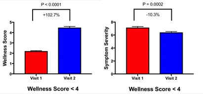 Among those reporting on pain symptoms with 3 or more visits and WS < 4 (14 participants), there was a 91.6% increase in WS and a 6.2% decrease in SS. Among those with 3 or more visits and SS > 7 (58 participants), there was a 21.6% increase in WS and a 14.1% decrease in SS.